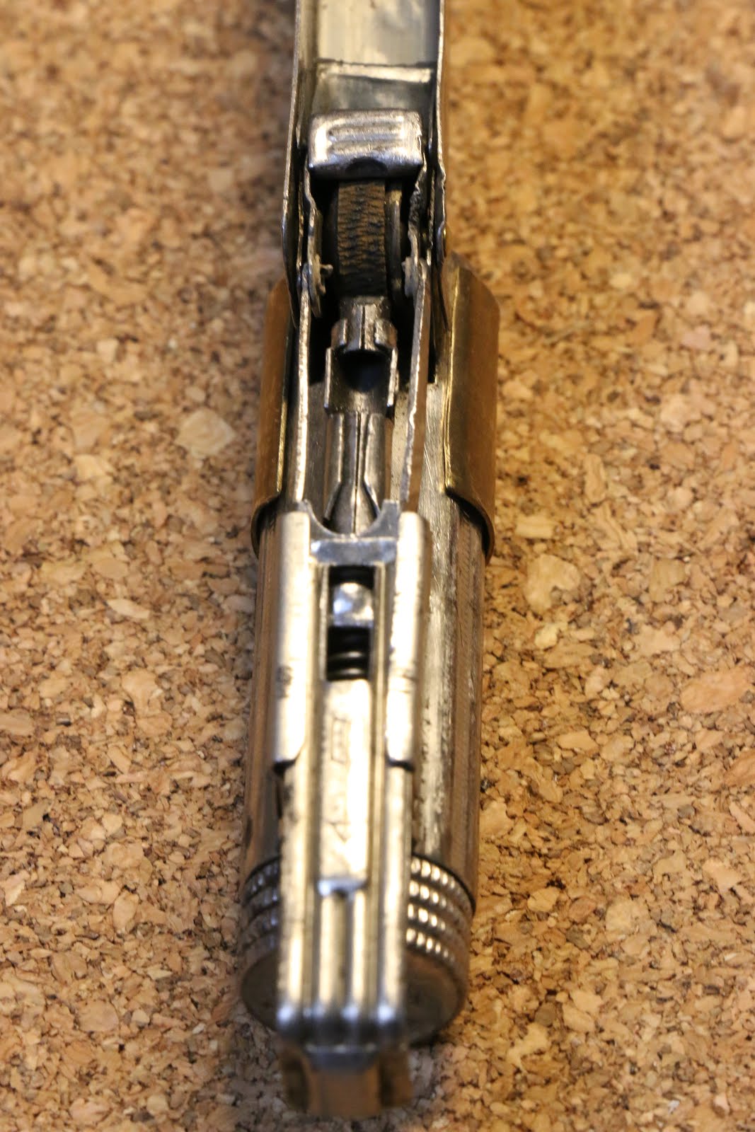 このスーパー。フリントチューブが、太いスプリングを留める部品より、はみ出ています。